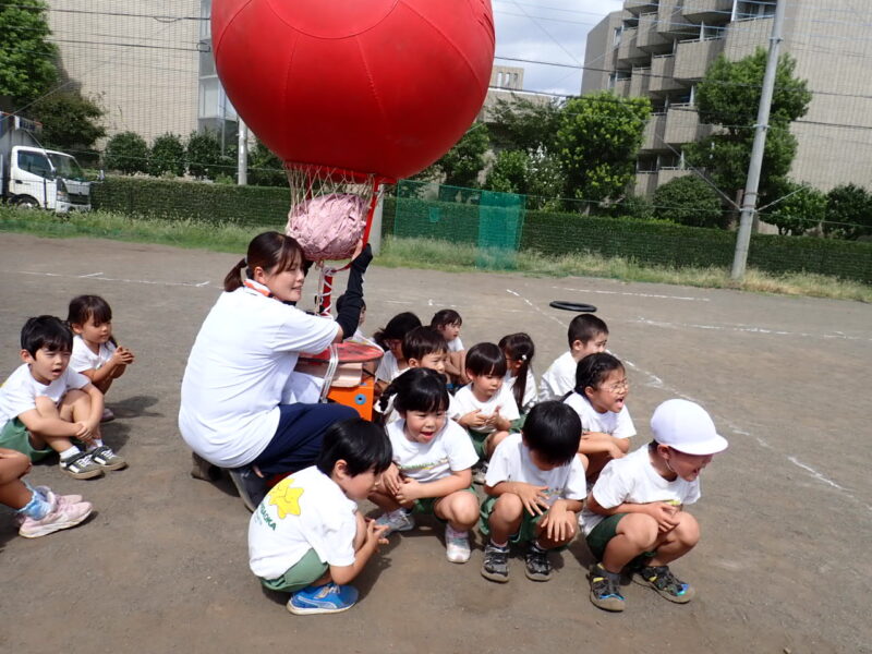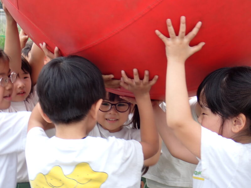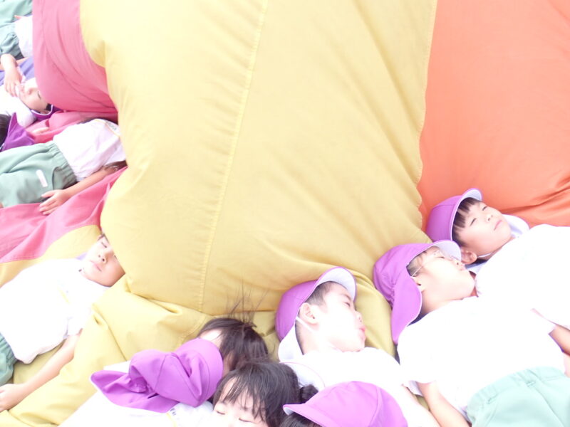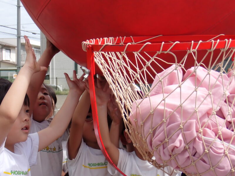 園庭で行った後は、一回勝負のパラバルーンを行いました。