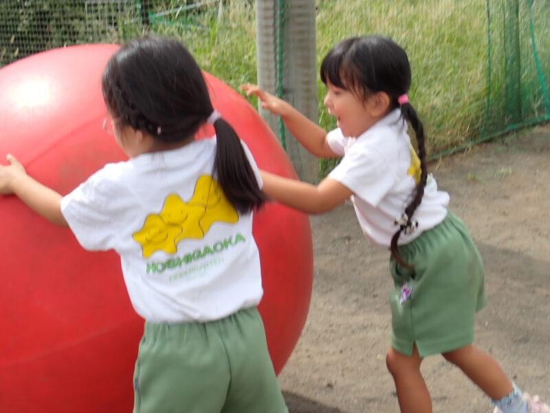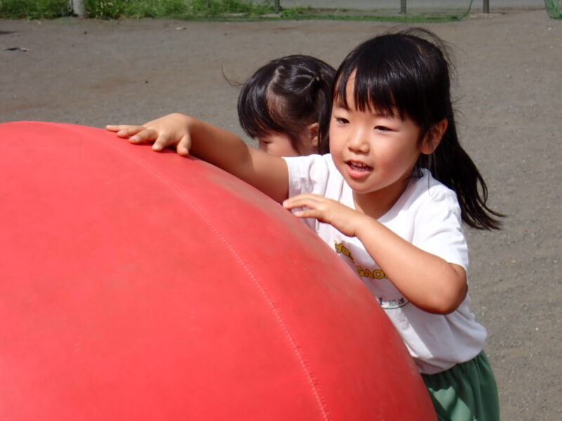 後ろからだけではなく、横から転がしてみたりと、工夫している様子が見られ