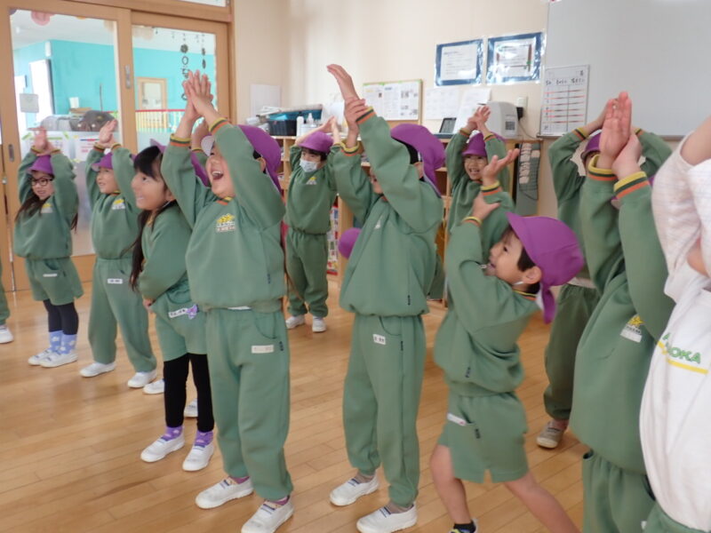 本日の英語あそびは、公開授業で小さいおともだちが皆の姿を