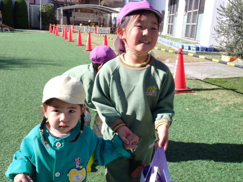 一緒に先生の所まで歩いているお友だちの姿は