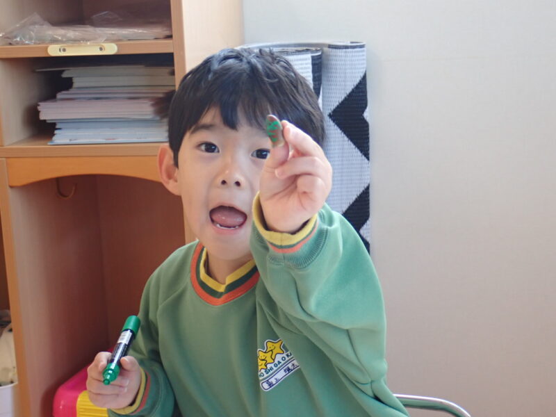 菫組さんで、先日拾ったどんぐりに、ポスカで色を塗ってカラフルに飾り付け♪