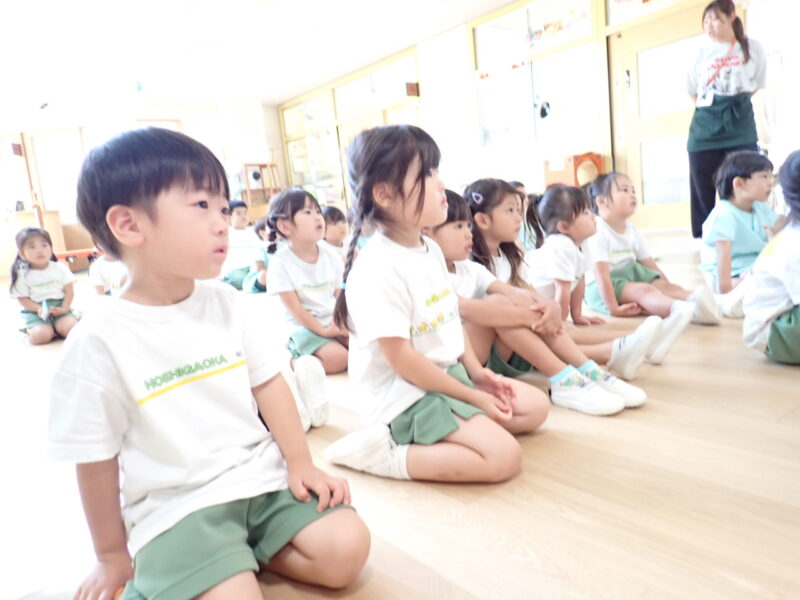 ページを見ながら「年長さんも、このページみたいに、苗植えをしてくれたんだよ!」と星が丘幼稚園での様子も合わせてお話を進めました。