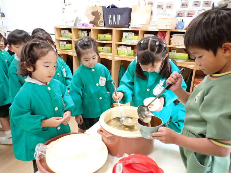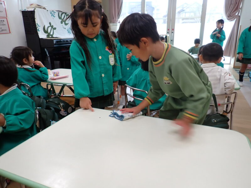 今日は、朝から「お仕事ありますか?」、「お手伝いありますか?」と、年長組さんが教室へ。