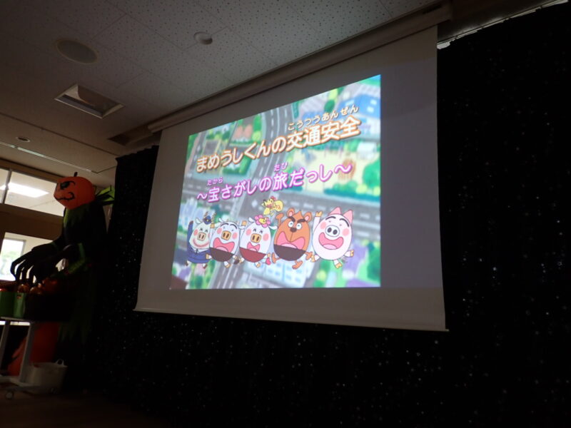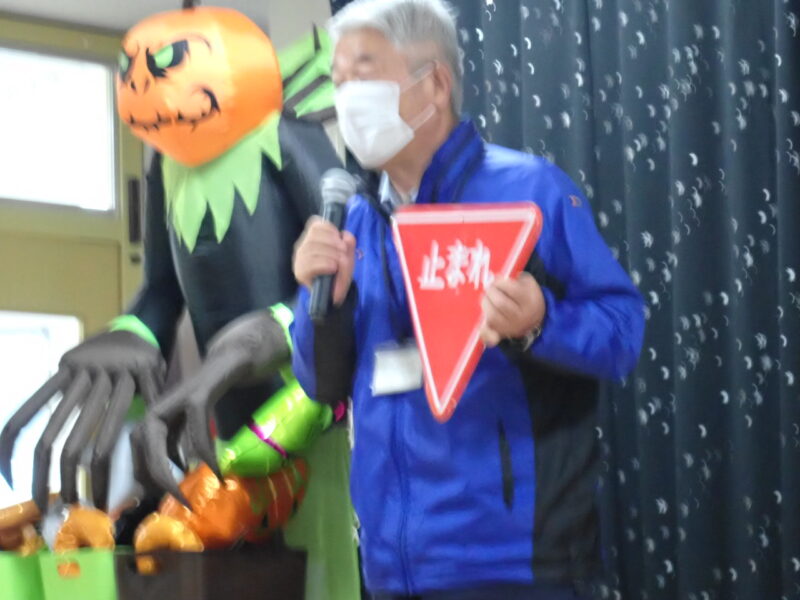 今回は、『相模原市役所 交通地域安全課』の指導員の方が、講話(映画)と歩行実技(広場)をご指導くださいました。