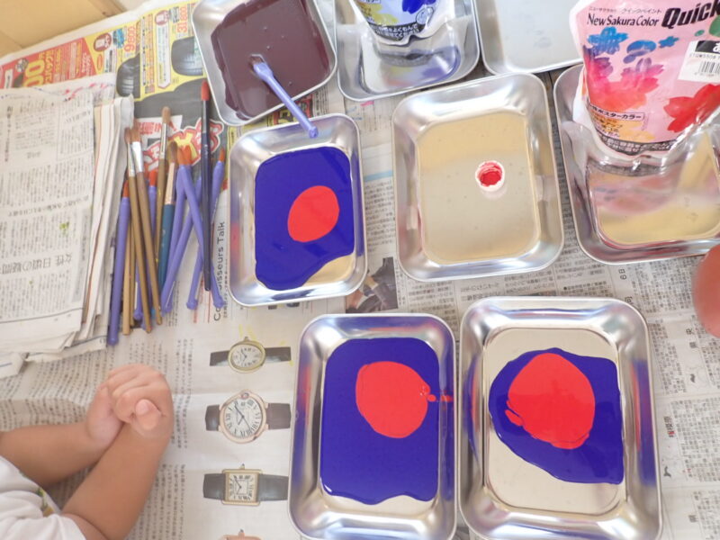 青と赤の絵の具を混ぜると何色になるのかな??