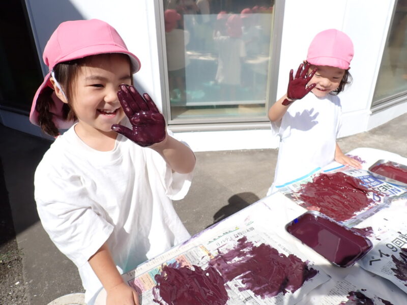 山本先生からご指導をいただき、手でダイナミックに塗り楽しみました🎶