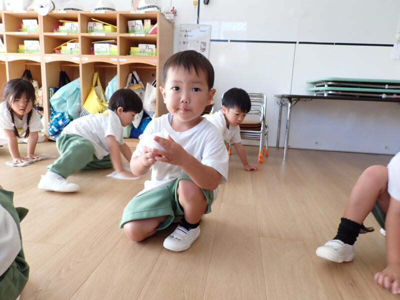 お友だちと『ごっちん』しないように、同じ方向に向かって行うことを意識して行いました。