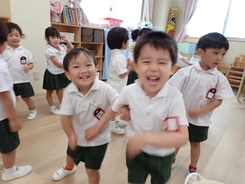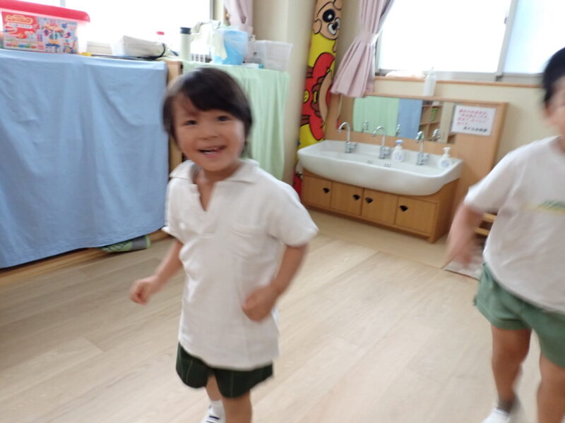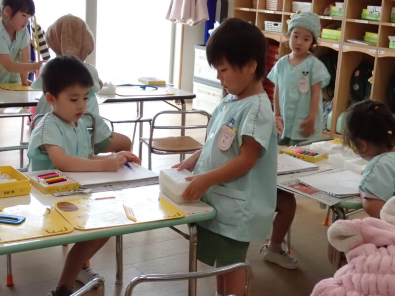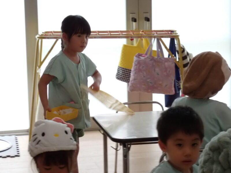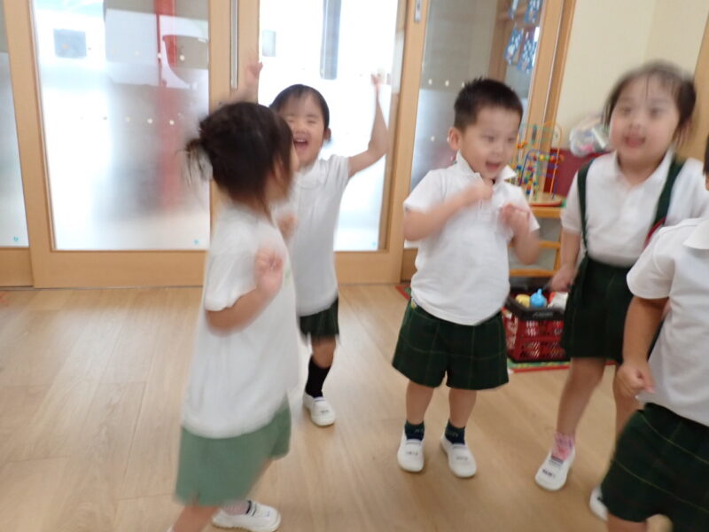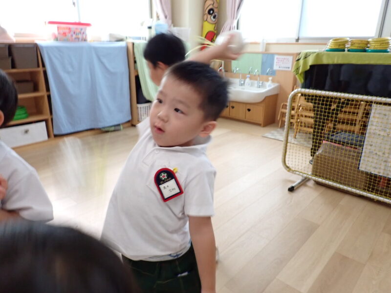 「お片付けするよ〜」と声をかけなくても、時計を見てお片付けを始めたり、周りのお友だちを見て片付けたり、お友だちに声をかけるお友だちがいました。