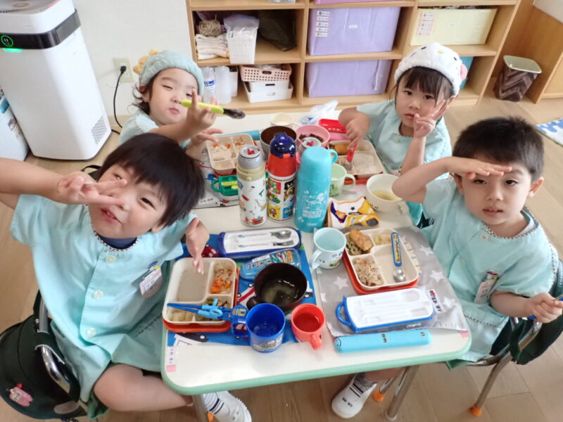 給食を食べ始めたのは、長い針が5!少しすぎてしまったけど、『5分とはどれくらいかな?』と実感することができたかと思います。