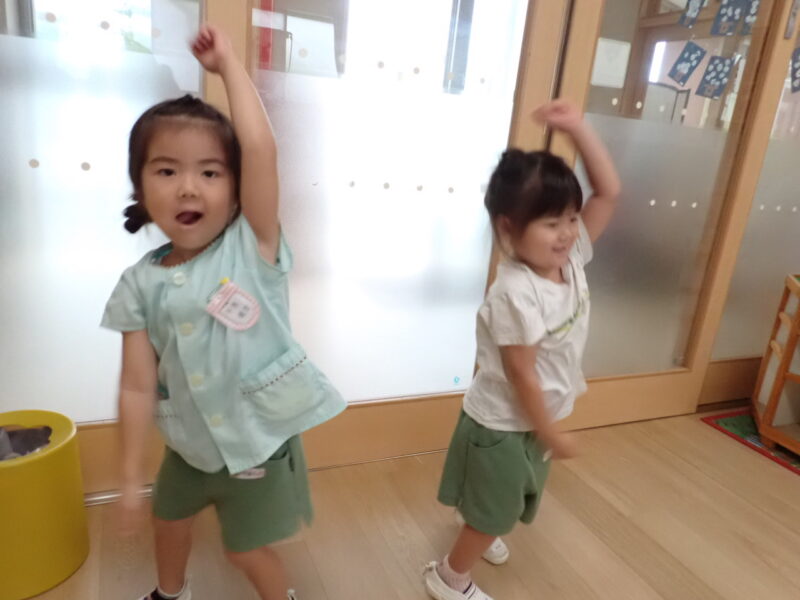 お迎え待ちの時に『焼き芋の手遊び』『ゲンコツ山のたぬきさん』の手遊びを楽しみました。