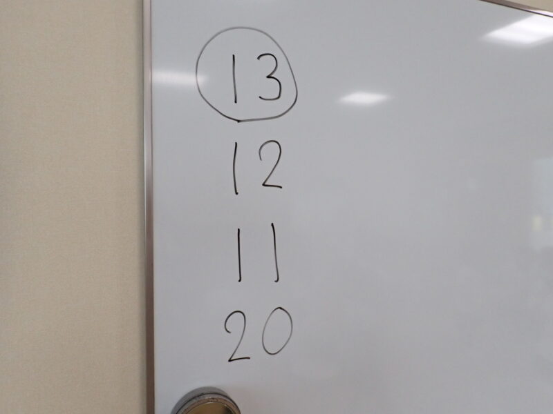 「13個と12個はどっちが多いかな〜?」『あぁ〜負けた』と楽しんでいました。