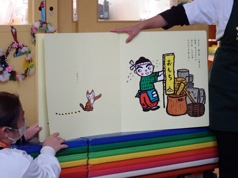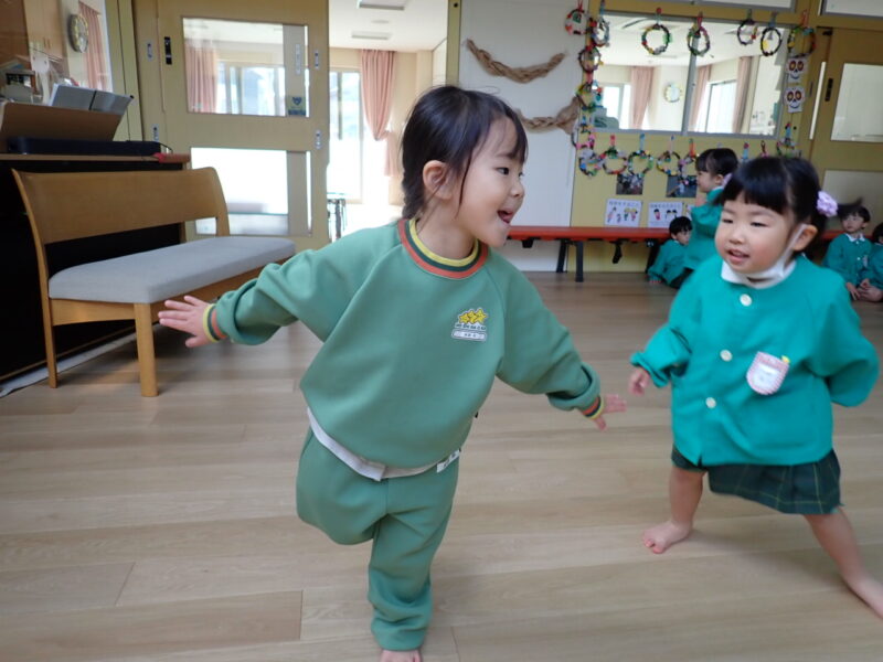 エアーでお餅つきの取り組みを行いました。また今度一緒に臼と杵を使って取り組みます!