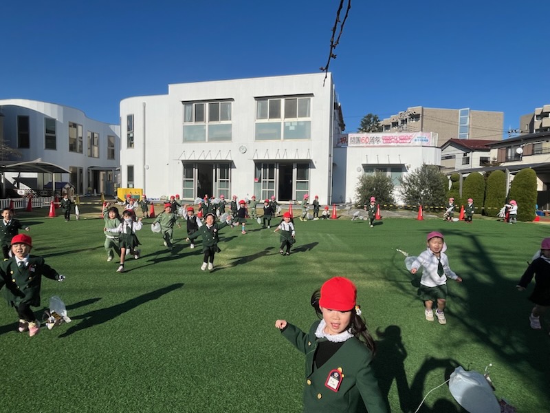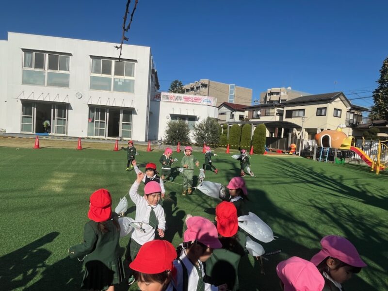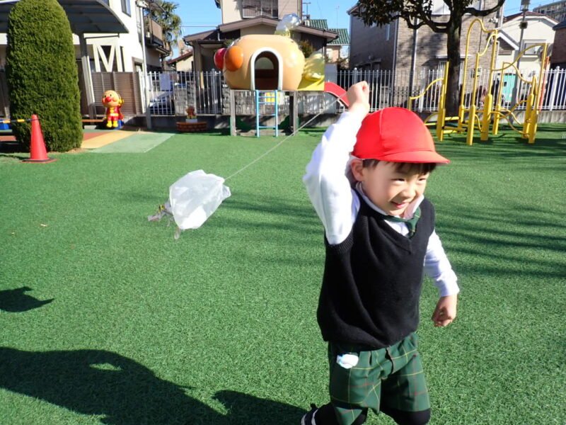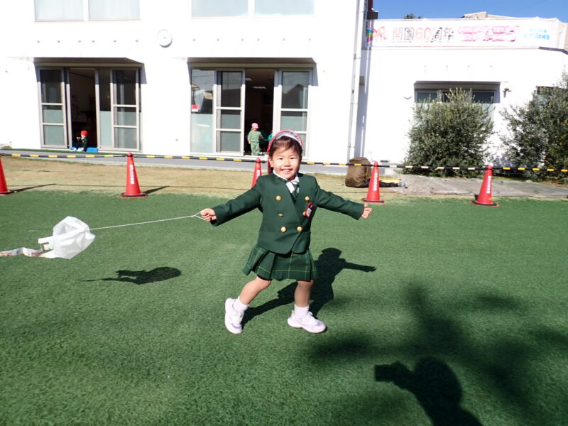 給食後は、園庭で『凧揚げ』