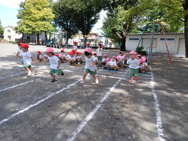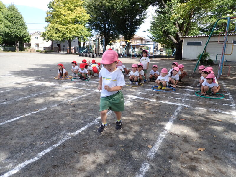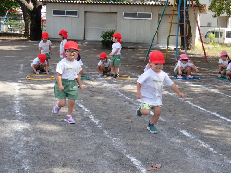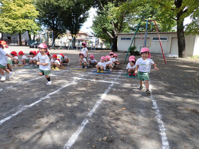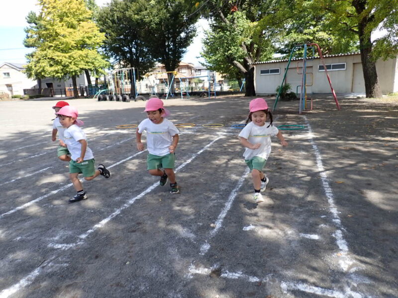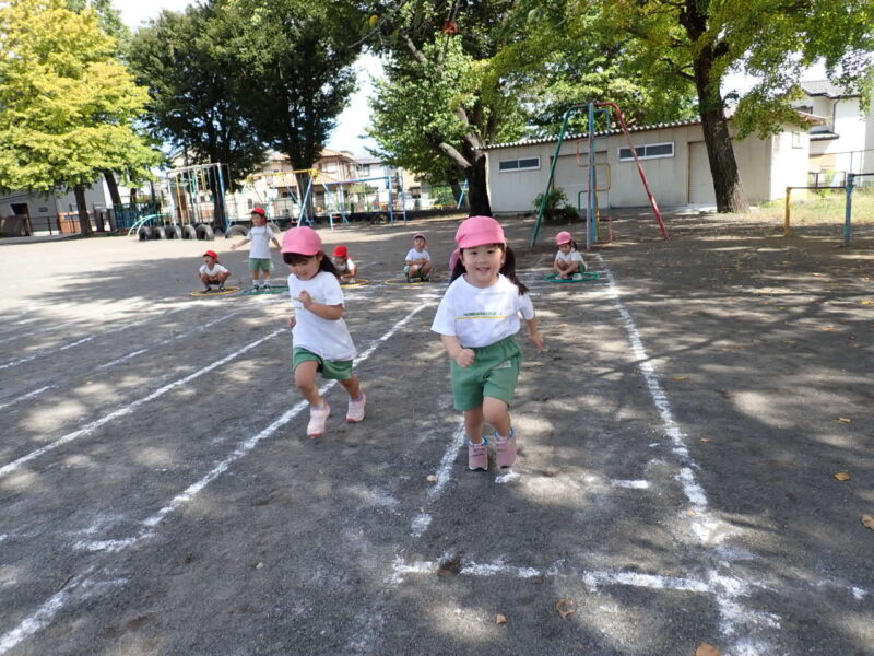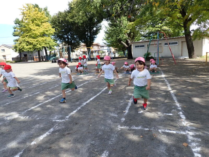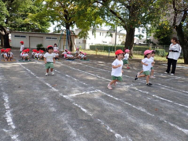 今日は走っている途中に転んだお友だちが0人!!足を上げてしっかりと走ることができましたね!