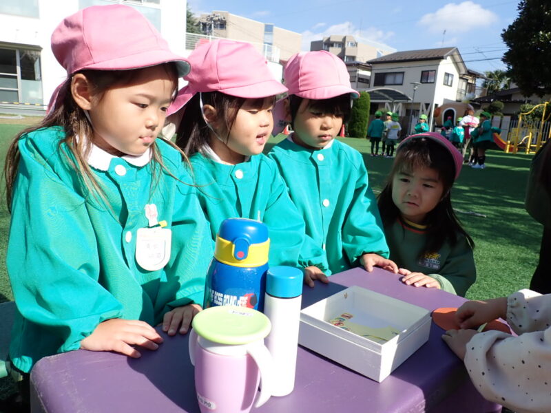 幼稚園の周りを散歩して少し経つと、雨が降ってきました☔️「セーフだったね。」とお話ししている様子が見られました。