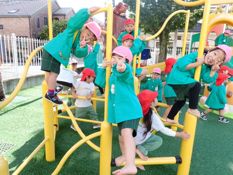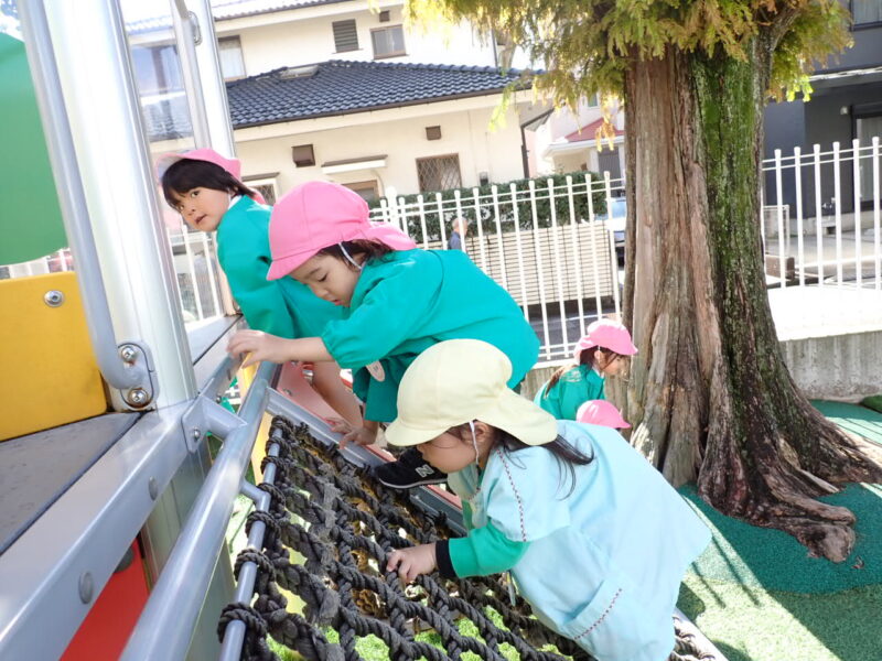 追いかけっこや滑り台を一緒に行い、楽しんでいました。