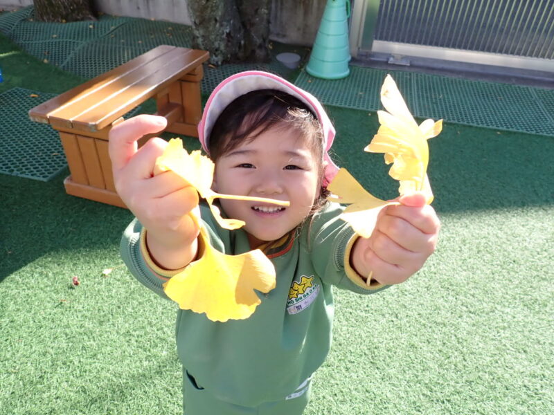 落ち葉がたくさんで秋から冬の変わり目を存分に楽しんでいるお友だちでした。
