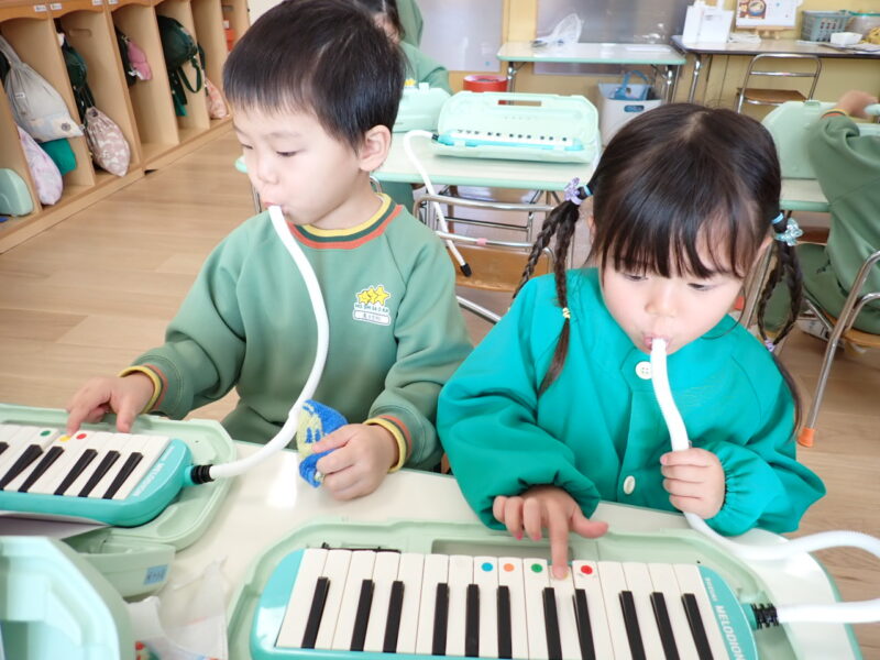 『たこたこあがれ』楽譜を一緒に指追いしながら行うと吹けるお友だちが増えてきました。