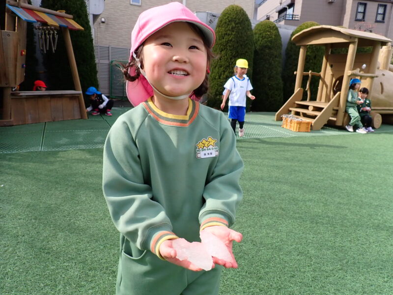 日曜日は園庭に雪もかなり積もっていましたが、昨日のお天気で雪が溶けて、お友だちが自由に動き回れるほど!