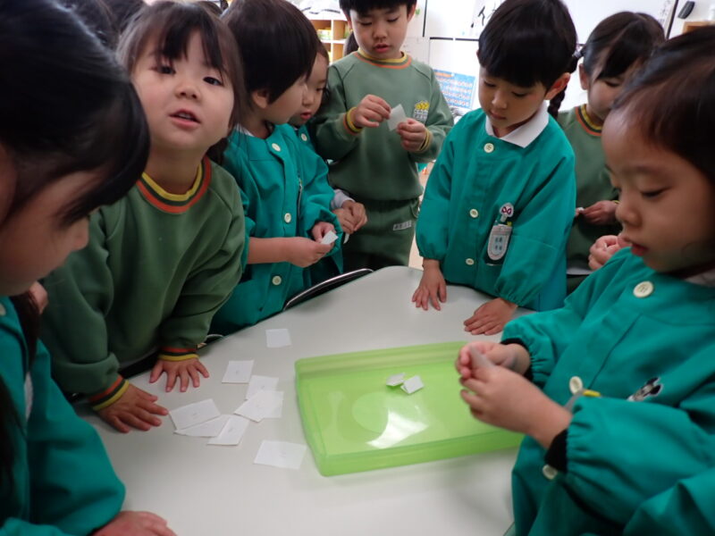 くじ作りからお友だちと一緒に行いました。番号書いた紙をみんなで折々。。何番かな??と楽しみにしていました。