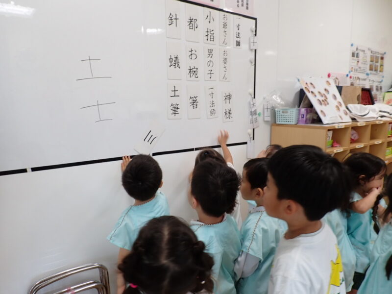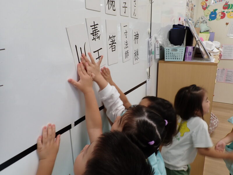 『針』と『箸』が一文字で似ているようで、戸惑いながらも一生懸命行なっていました。何度かフラッシュカードを行っているうちに、お手のものに✨