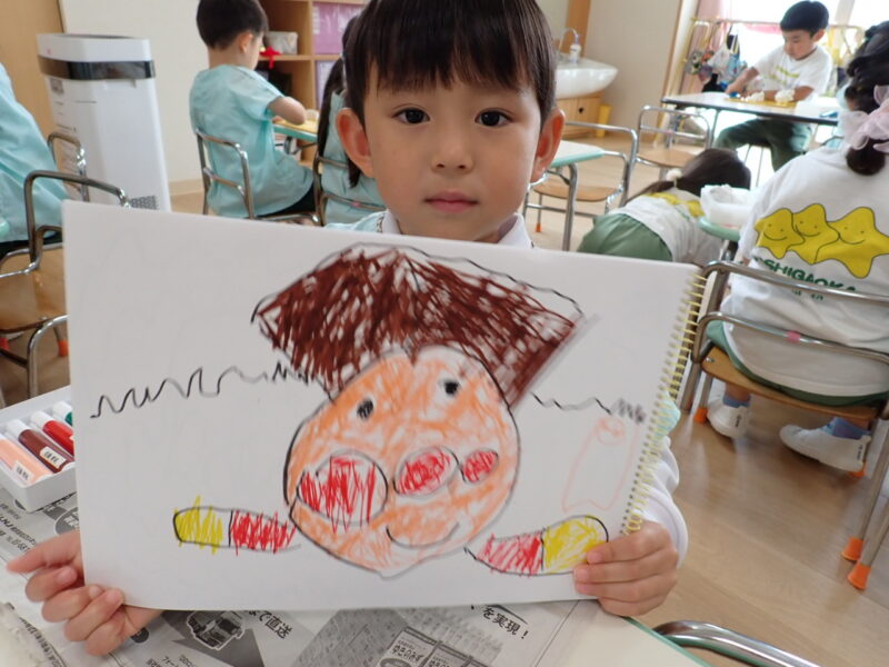 「似てるけど、お友だちの字は上が長いんだ〜」と話すと「じゃあ反対にすればいいんじゃない!!」と話していました。それが上の写真です📸色々思いつきますね〜💡