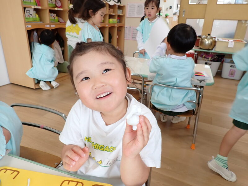 『小指』を見て「これ自分の字だ!」と話したり、『土筆』をみて「お友だちの字と一緒!」と言っていました。
