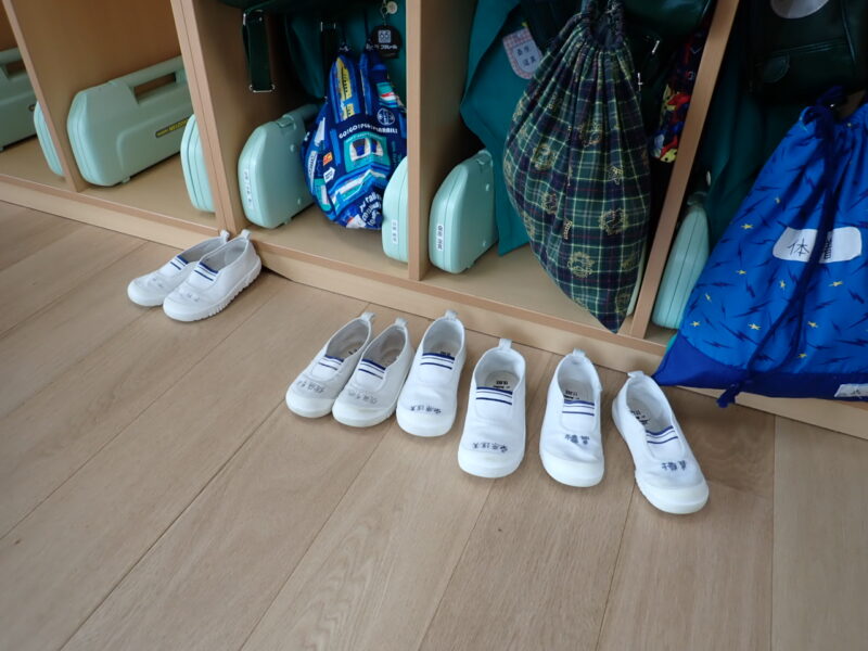 何も言わずとも上履きをロッカーの前に綺麗に並べられるお友だちが増えてきました。これで上履きがなくなってしまったり、躓いて転ぶ心配もないですね😄