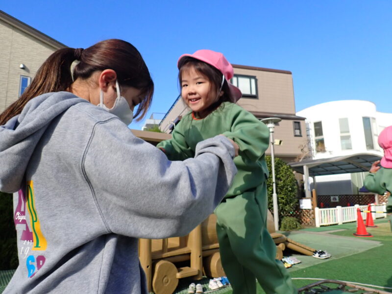 支度後、体育あそび後、昼食後とたくさん外遊びを楽しんだお友だちです🌸