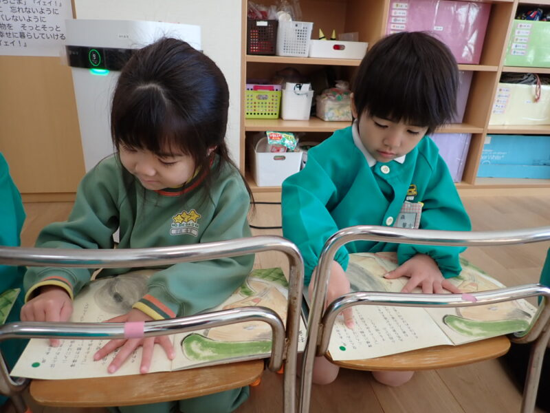 明日漢字絵本を持ち帰ります。最後の一寸法師の本読みを一緒にして楽しみました🎵