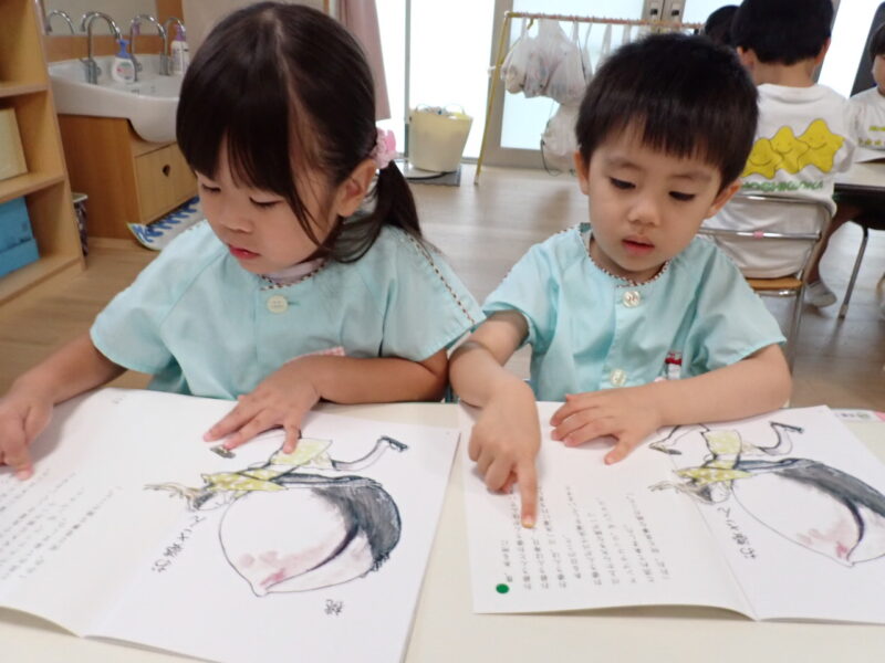 本日、桃太郎の漢字絵本を持ち帰っております。お家でも是非、一緒に楽しんでください!