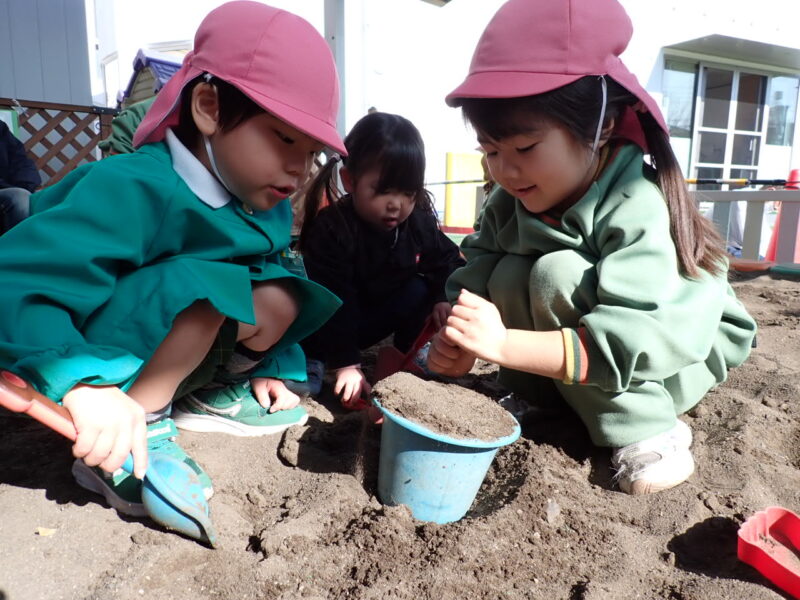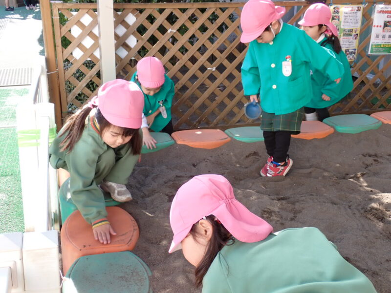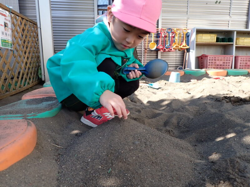 「ここの砂綺麗にしてるんだ〜」と話していました。気付いて行動できるところが素敵ですね!