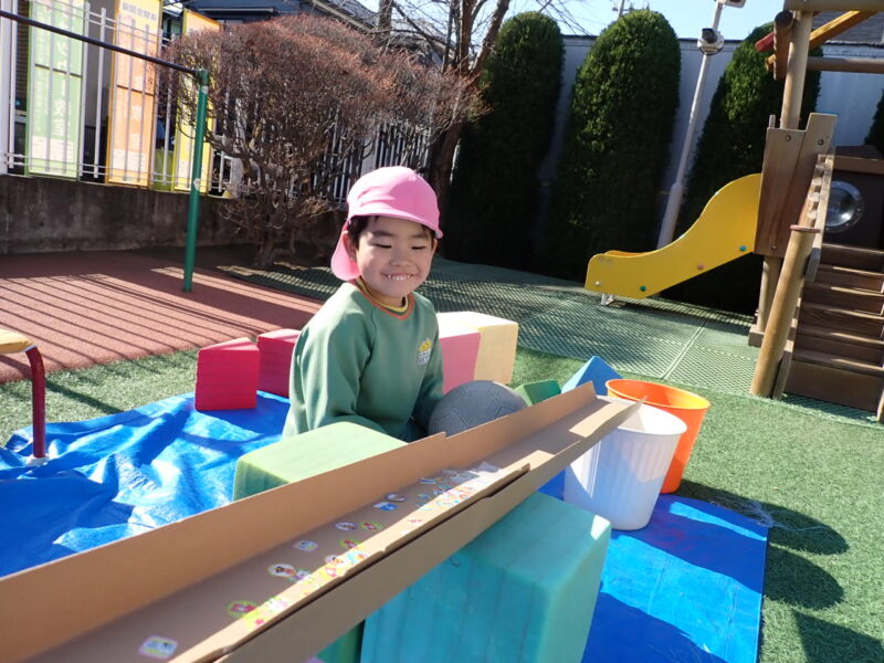 町田先生が作ってくださった、ボールゲームを楽しんでいると、どんどん改造されていて桜組さんのゲームが完成〜✨