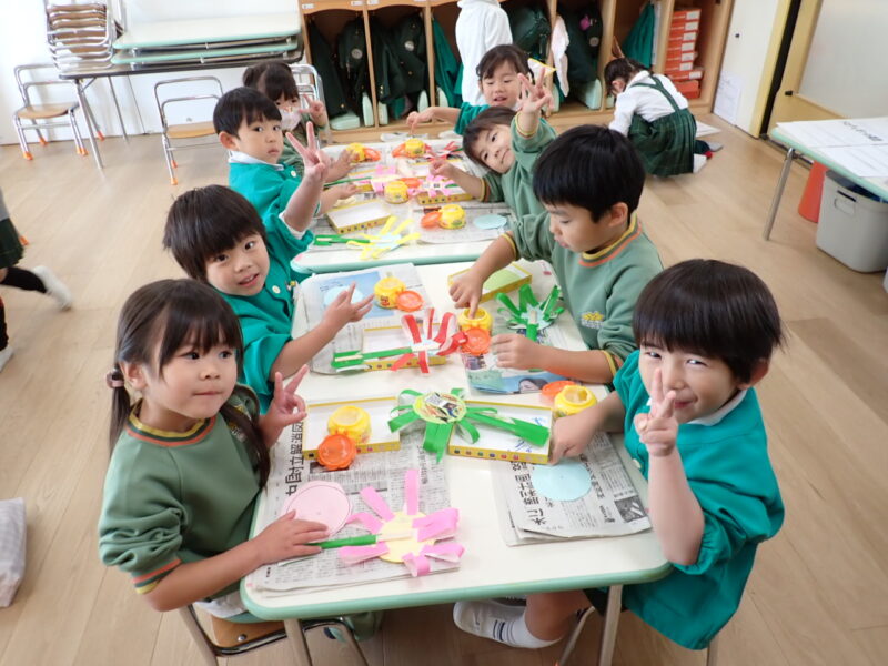 *糊の塗り方が上手になりました。以前はたくさんの手に大量の糊、製作物にも大量の糊がくっついていて乾かない💦なんてこともありましたが、薄く薄く塗るお友だちが増えてきました!