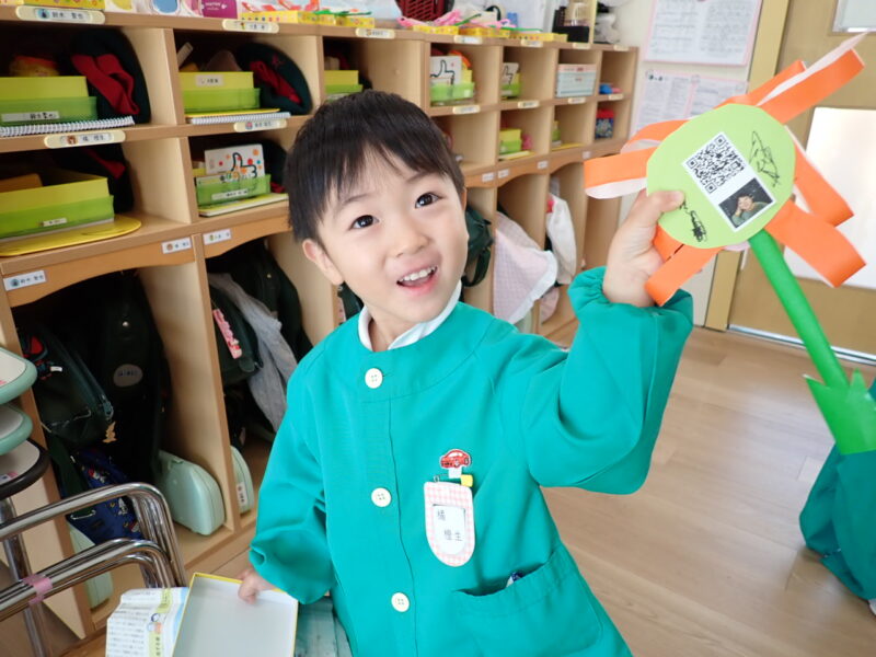 年長(虎組)さんがリボンのプレゼント🎁をくれました。