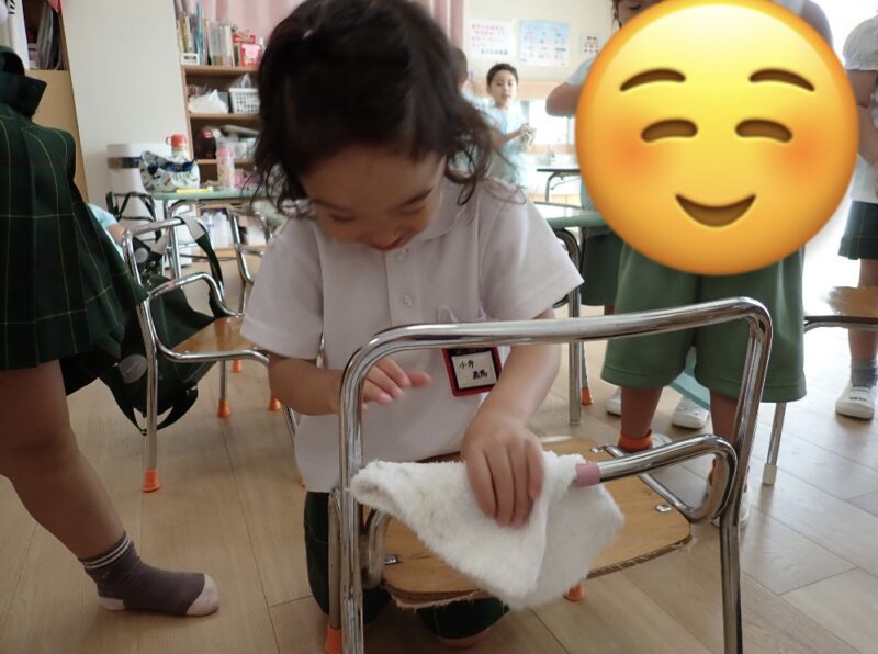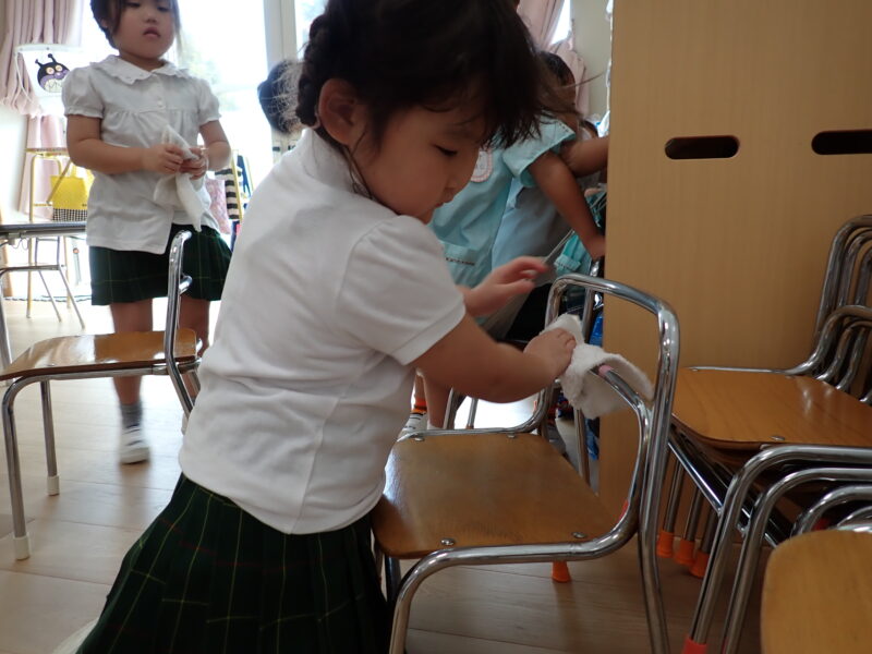 使い終わった椅子を自分で拭いて重ねることに挑戦🔥