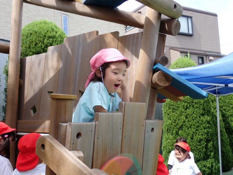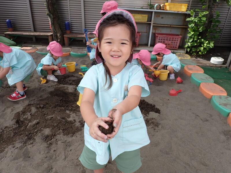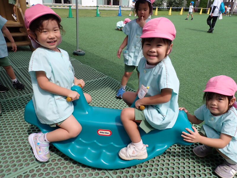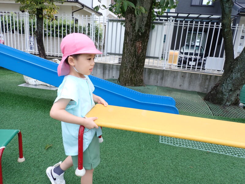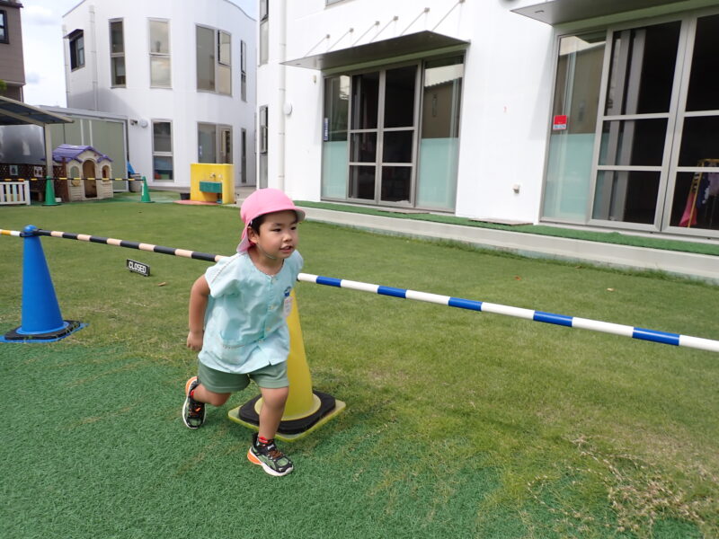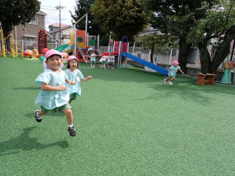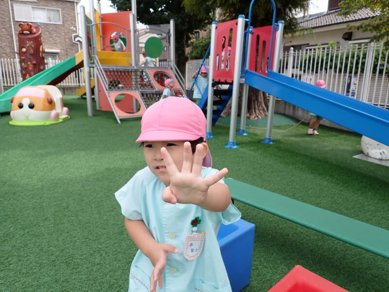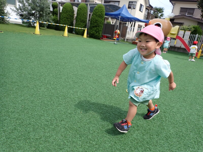 水泳教室から帰ってきて、帰りのバスで「何する〜?」とお話をしていると、「外遊びに行きたい!」「水遊びがしたい!」と元気いっぱいのお友だちでした。プールに行った後なので、外遊びに行きました🏃‍♀️