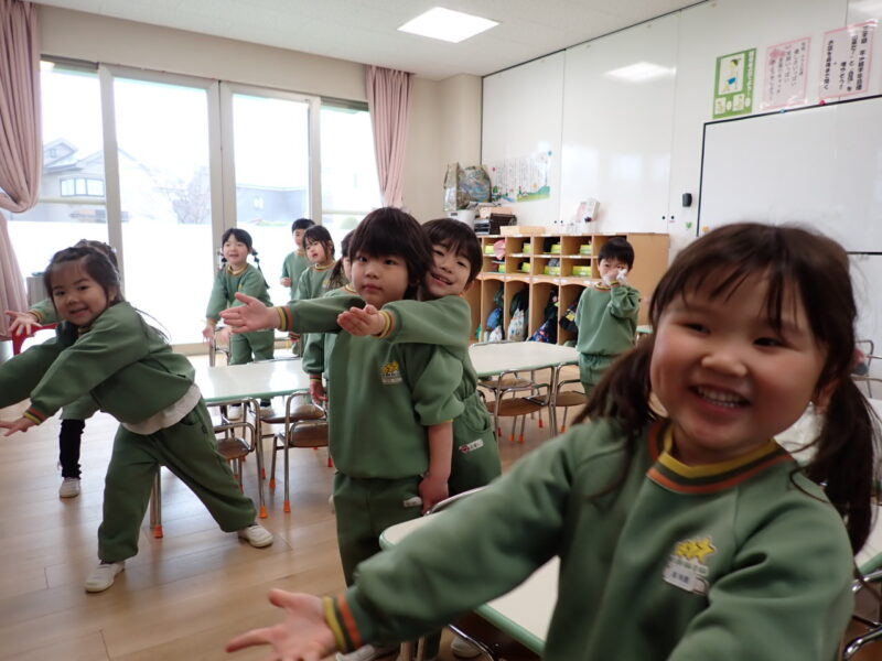本日は朝から雪が❄️「雪と雨が混ざってたよ〜」「寒いね〜」とお話をしていましたが、元気いっぱいなお友だちです💖