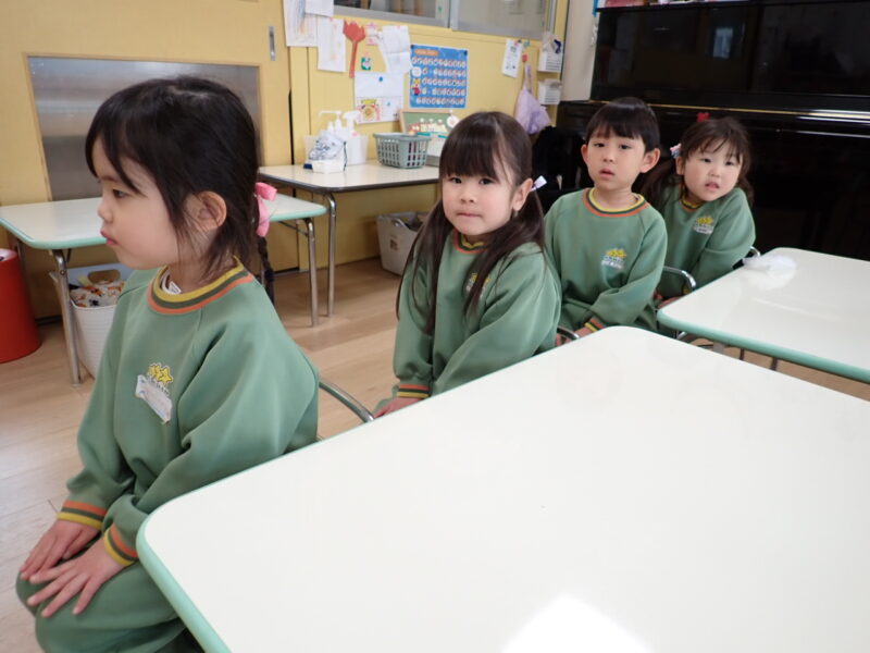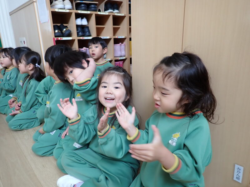 発声練習では、『ドレミ〜🎵』と歌いながら手を前に(笑)苺組のお友だちの真似っこ遊びを楽しみました😊