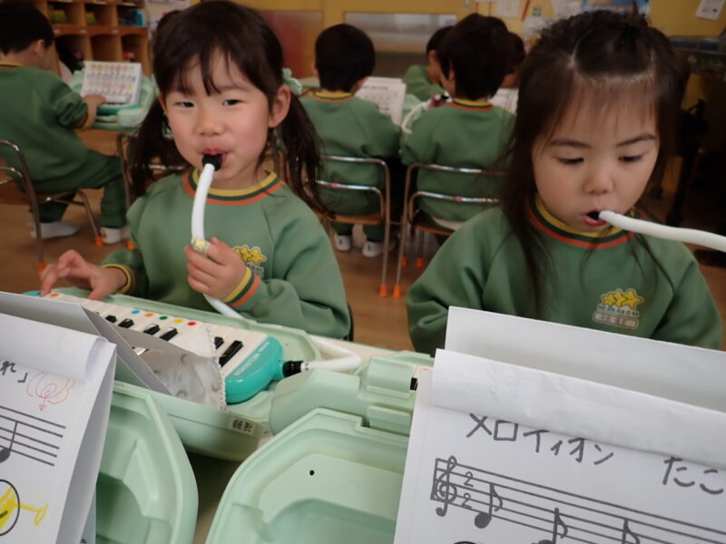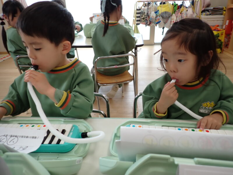 『冬休みの課題にメロディオンの楽譜に色をつけよう!』とありましたが、楽譜に色がついていないお友だちがたくさん。お友だちが吹こうとしたらわからない〜なみなみだでした😢