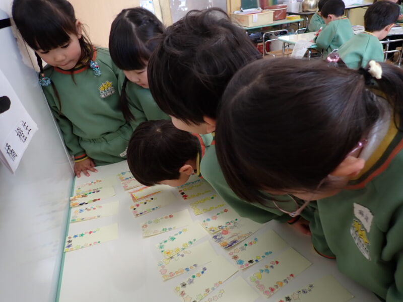 環境や、一緒にいるお友だちが違うので、いつもより少し緊張感もありました。『あれ?先生なんて言ってたっけ?』という様子も見られ、お友だちに聞けるように促したり、思い出せるように声をかけ、おともだちと『助け合い!』