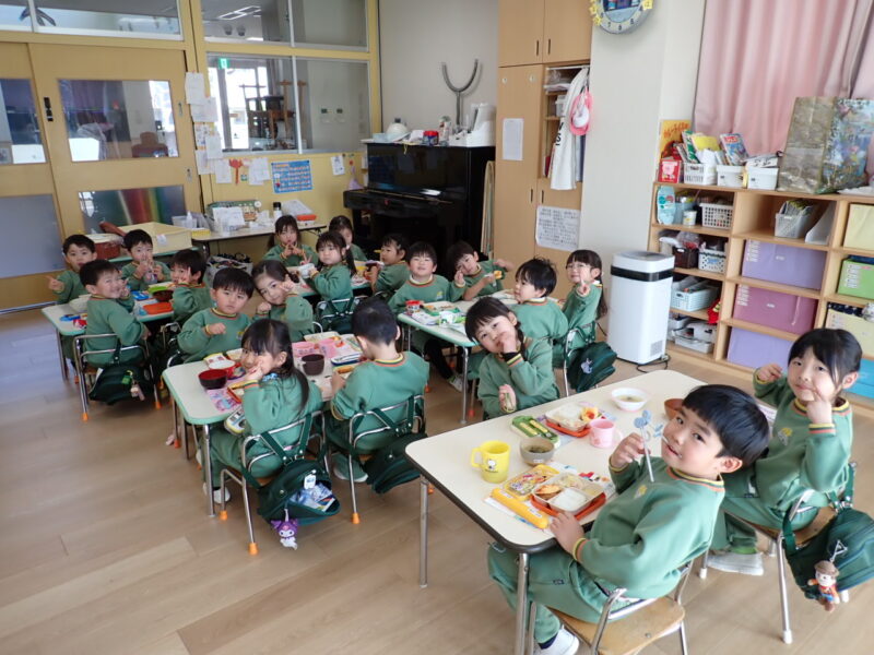 いただきます🙏今日は蓮根のマヨネーズ和えがあり、ちょっぴり苦手なお友だちもいましたが、少し、挑戦🔥しました。ぴっかりんのお友だちもたくさん!