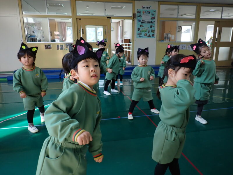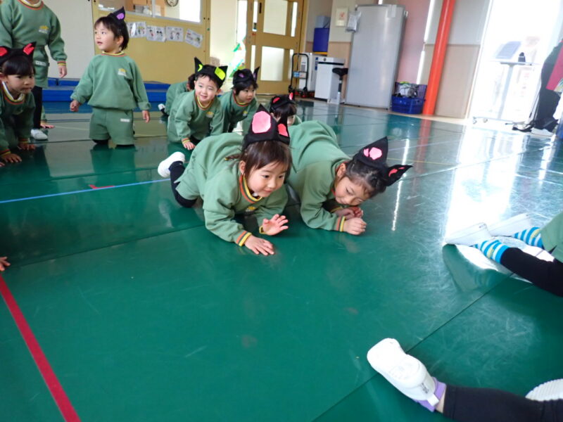 今日は、いつものスケジュールと変えて、朝一番にホールで『ルドルフとイッパイアッテナごっこ🎶』