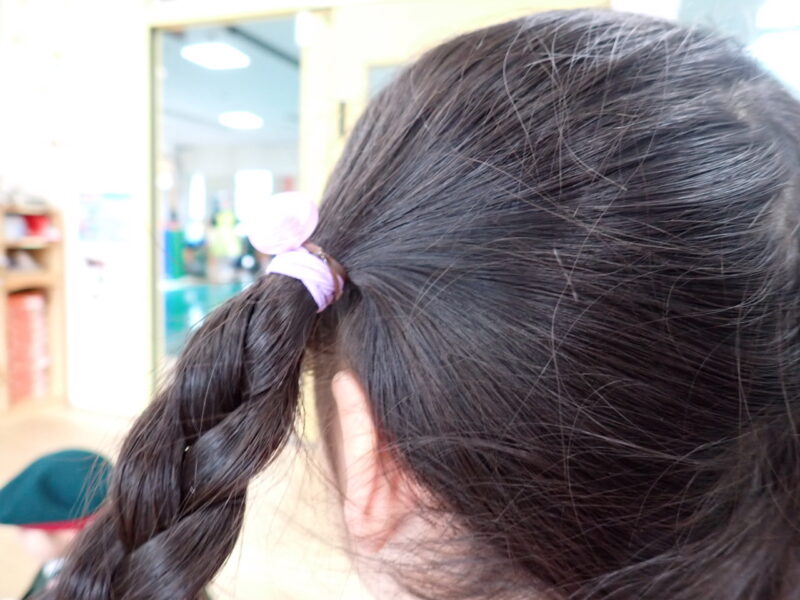 猫耳をつけるにあたり、2つのお団子や、耳の上に結び目を作って頂けると止めやすくなるようです。可能でしたら、明日、明後日と結び方にご協力をお願いいたしますm(_ _)m