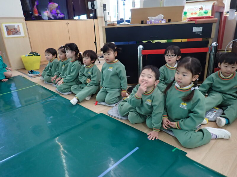 場所によって、劇に支障がある場所に座っていたお友だちには移動をお願いしました。写真にいないお友だちは、移動中かも・・・スミマセン(>_<)