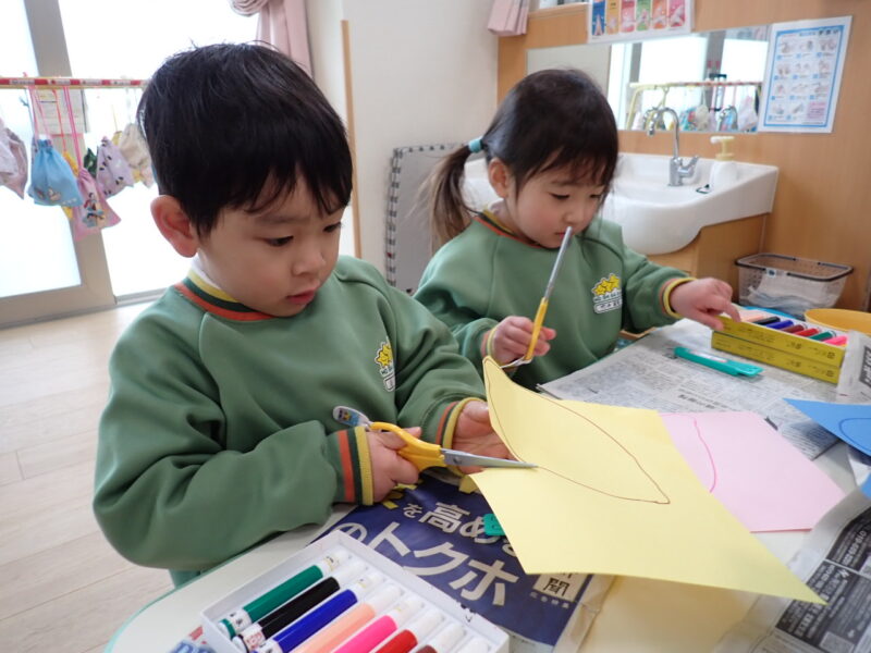 今日は、自分で鬼の輪郭を描き、鋏で切りました✄