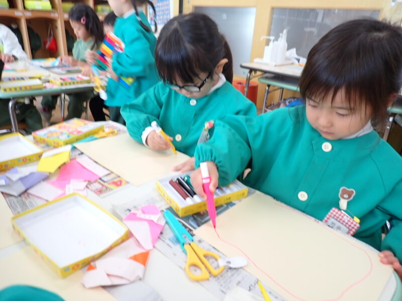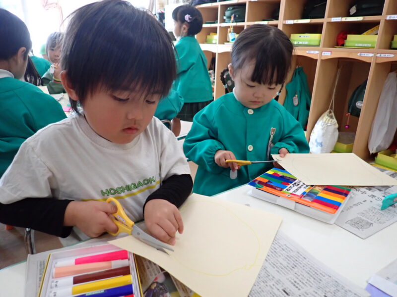 台紙に自分で〇や四角を書き、それを鋏で切ってみました\(^_^)/