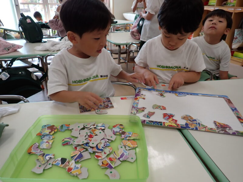パズルあそびに挑戦しました~ 午後も続きを行い、あと少しで完成~のところまで。。。