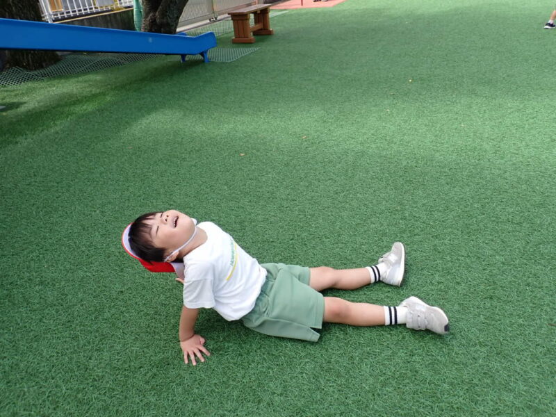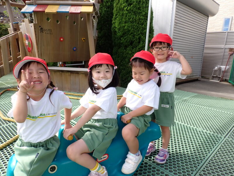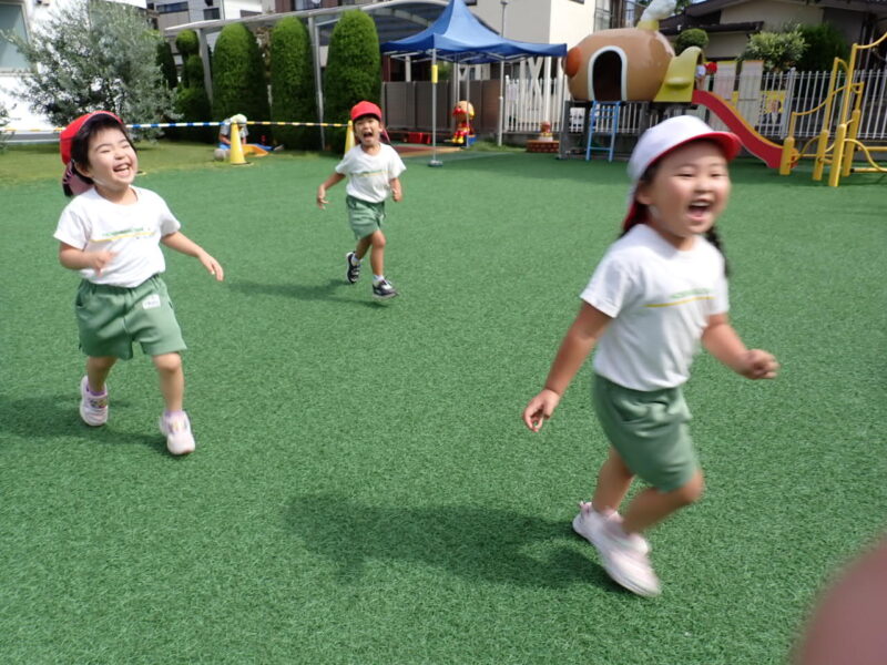 今日もお休み0人。全員が支度を終えたところで、園庭あそびへGO!