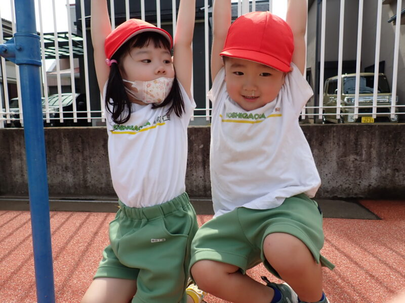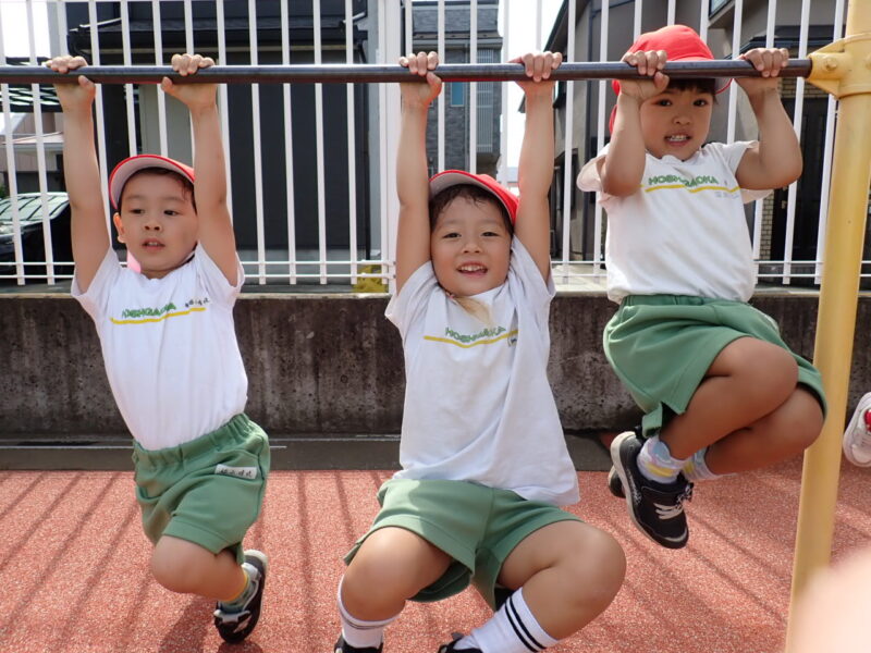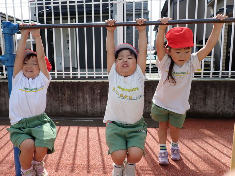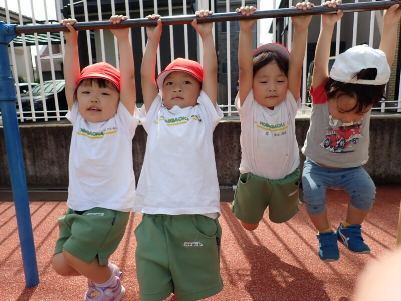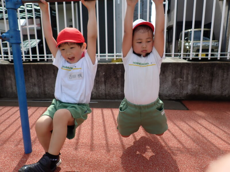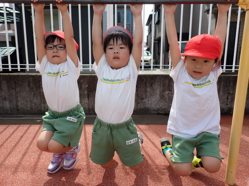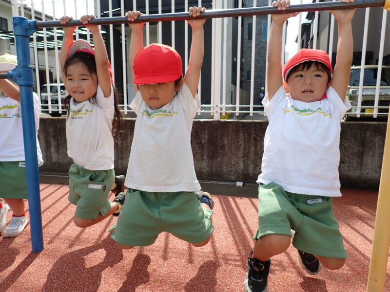 運動会後に体育あそびで取り組み『鉄棒』。「皆の力を見せて~」と、ぶら下がりに挑戦してみました!(^^)!